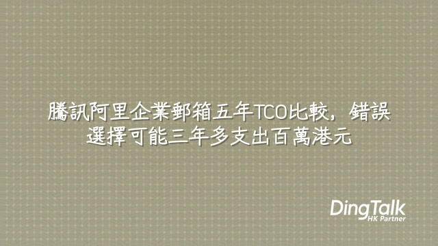 • 阿里釘釘郵箱(專業版 HK$45/用戶/月):首年費用約HK$270,000,前期設定複雜。但整合組織架構自動化後,五年維運成本降低17%,尤其在資料治理與合規稽核上節省大量人力。