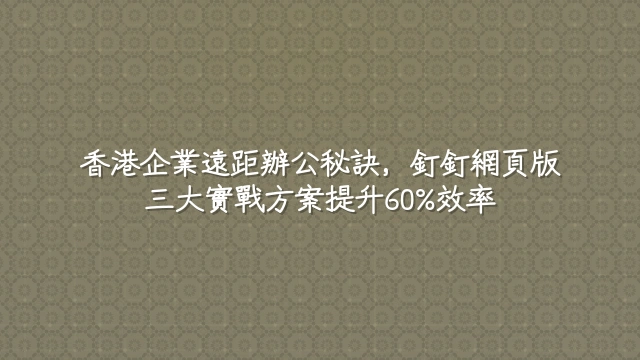 實戰方案聚焦於解決香港企業常見的流程延遲、資訊斷裂與權限混亂等痛點,透過釘釘網頁版實現端到端自動化。相較理論框架,此類應用緊扣財務報銷、市場協作與人力考勤三大場景,並與SAP ERP、Workday等本地常用系統深度整合,確保合規與效率兼顧。