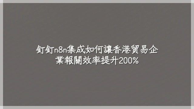 自動化報關流程的釘釘n8n集成的投資回報率(ROI)是衡量其商業價值的核心指標。此方案透過減少人工介入、降低錯誤率與加速通關,通常於六個月內達致損益平衡,尤其適用於日均處理逾50票報單的中大型貿易商。初期建置成本約港幣$180,000至$250,000,涵蓋雲端資源、工程師投入與第三方API年費。量化效益顯示:每次報關平均節省2.7小時人力,錯誤率由6.4%降至1.2%,通關速度提升38%,在DHL與FedEx跨境通道中反應尤為明顯。損益平衡模型假設每月處理1,200票報關單,每小時人工成本為港幣$150,六個月累計節省成本約港幣$290,000,足以覆蓋初始投資;若報單量下降20%,平衡點僅延遲至第八個月。然而,三大潛在風險不容忽視:系統相容性問題(特別是舊有ERP與釘釘API的資料格式衝突)、員工適應期導致首月效率暫降15%,以及外部API變更(如HKPost介面升級)可能中斷n8n工作流。建議採取分階段實施策略:首階段選定單一產品線(如電子零件進口)試行三個月,驗證資料同步穩定性與異常處理機制,再擴展至全公司七大業務線,有效控制全面導入風險。展望未來,隨著香港智慧港口計畫推進與海關數位化門戶開放更多API權限,此架構將具備預測性合規檢查能力,實現「零觸碰報關」的新標準。