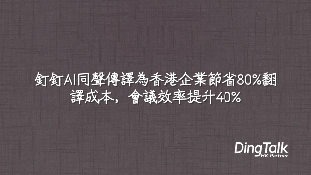 一家擁有200名國際員工的企業全面採用釘釘同聲傳譯,每年可為每位員工節省HK$18,000翻譯相關成本,三年累計節省逾HK$3.6百萬。這不僅是成本節省,更是效率質變的起點