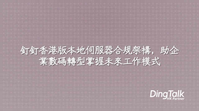 - 釘釘由阿里雲本地數據中心支援,所有資料處理均在港完成,符合PCPD第4.2條技術指引對「資料保留地點」要求,並通過ISO/IEC 27001認證。