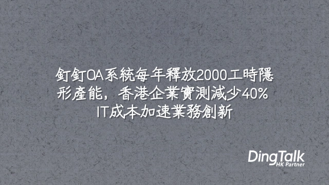 BLUF:釘釘OA系統在香港中小企中性價比突出,整合通訊、流程自動化與數據管理。這意味著更低IT開支、更快審批流程與跨部門協作升級,助企業在競爭激烈環境中保持敏捷。