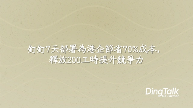 掌握「快速部署 + 變革管理」雙引擎,釘釘就成為驅動持續優化的成長飛輪。與其問「點解要揀釘釘」,不如問「點解不趁現在就開始?」立即試用釘釘,釋放你團隊每年200+工時,把行政成本轉化為競爭優勢