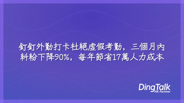 某香港本地物流公司導入釘釘外勤打卡後,三個月內考勤爭議案件從每月平均22宗降至2宗,糾紛下降90%。更重要的是,客戶服務時長數據變得可分析,優化了調度排班模型,單日任務完成量提升23%。這說明:精準打卡不僅是監控,更是效率升級的起點。