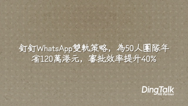 「工作釘釘+生活WhatsApp」雙軌模式可實現每50人團隊年省HK$1.2M等效產出。技術能力:平台分工減少訊息干擾 意味著 每人每月節省6.5小時 因為 不再需跨平台搜尋對話或處理下班後工作訊息。