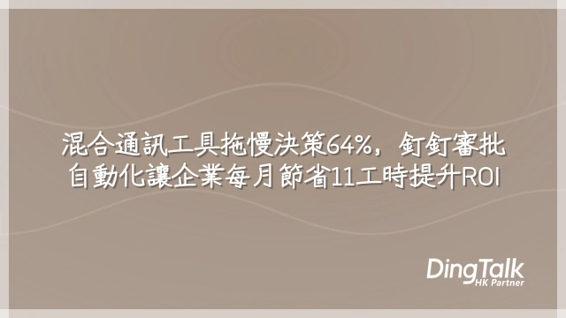 實施溝通分流後,企業平均每月節省11.3工時於內部協調,審批週期更縮短達64%——這不是數位轉型的副產品,而是直接重構營運ROI的核心引擎。對一家中型零售連鎖品牌而言,導入釘釘專屬工作協作與審批系統後,年度行政成本降低達HK$1.2百萬,投資回報週期僅3.8個月。根據2024年亞太區智慧辦公效能報告,此類「企業流程效能指標」的躍升,直接關聯到決策速度與現金流優化,遠超單純的時間節省。