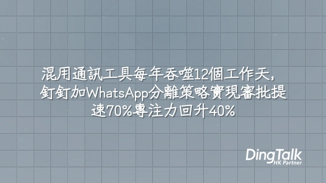 工具專一化才是合規與人性化交集的唯一解方:釘釘承擔極速審批,WhatsApp守護生活節奏。兩者不應混淆,而應透過安全機制協作——這正是下一個商業課題:如何在不打破界限的前提下,實現跨平台的可控協同?