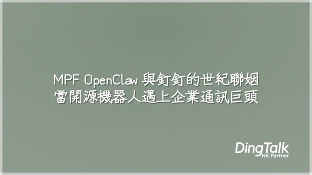 「MPF OpenClaw 打通釘釘」,聽起來像極了兩位異國戀人終成眷屬的浪漫橋段——一個是出身草根、熱血叛逆的開源機械爪,另一個是穿著筆挺西裝、坐鎮企業辦公室的通訊巨頭。當它們在 API 的牽線下深情握手,迸發的不只是火花,而是一場實體世界與數位系統的深度共振。