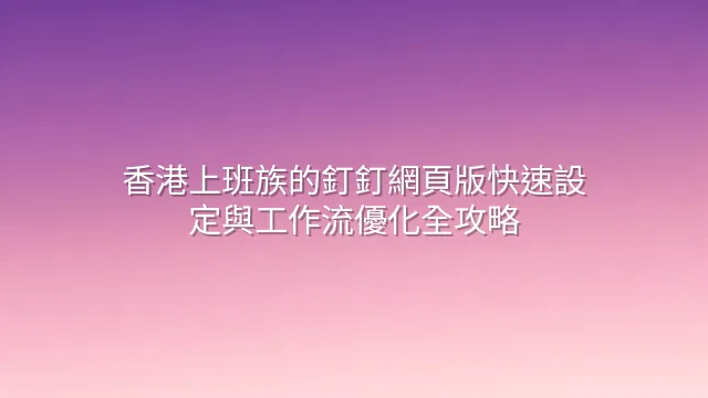 還在為每天開機後手忙腳亂登入各種工作平台而煩惱嗎?香港打工仔最怕浪費時間,一分鐘都嫌多!別擔心,釘釘網頁版就是你的救星,不用下載、不佔空間,打開瀏覽器就能飛天遁地處理所有工作。重點是——設定快到你懷疑人生,真的只要一分鐘,連泡杯絲襪奶茶的時間都省下來。