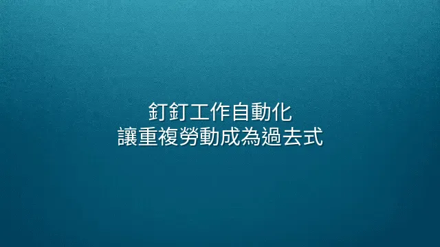 但別急著 resign,釘釘工作自動化正是你的「反殺武器」。透過識別這些痛點,我們能將機械性任務交給系統處理,讓人類專注於真正需要智慧與判斷的工作。想像一下:不再手動統計考勤,不再熬夜產出月報,甚至連會議紀錄都能自動生成——這不是夢,而是可以立即實現的辦公室革命。