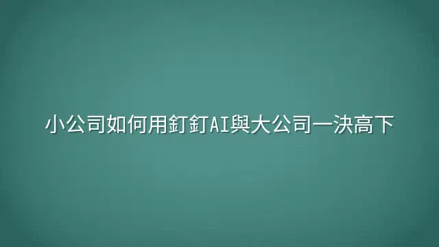 說到小公司如何用釘釘AI同大公司「貼身肉搏」,光省錢還不夠,要贏就要出奇招!別以為大公司人多資源多就穩勝,其實動作慢、反應遲鈍才是他們的阿基里斯腱。這時候,小公司只要用對工具,立刻就能化身「敏捷忍者」,快狠準地搶佔市場先機。