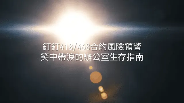 「合約不是情書,不能只看浪漫的結尾。」在釘釘418/468合約的世界裡,笑著點下「同意」的人,往往最後哭著找IT救火。別讓自己成為辦公室悲劇的主角,先學會用「防禦性閱讀」拆解條款——就像拆炸彈,剪錯線就全涼了。