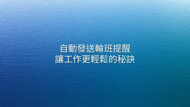 「叮咚!您已成功錯過早班!」——這不是鬧鐘,而是某位同事在群組裡的哀嚎。別笑,這場悲劇每天都在不同公司上演。但現在,我們有救星了:自動發送輪班提醒系統,就像一位永不疲倦、不會忘記你排班的超級助理。